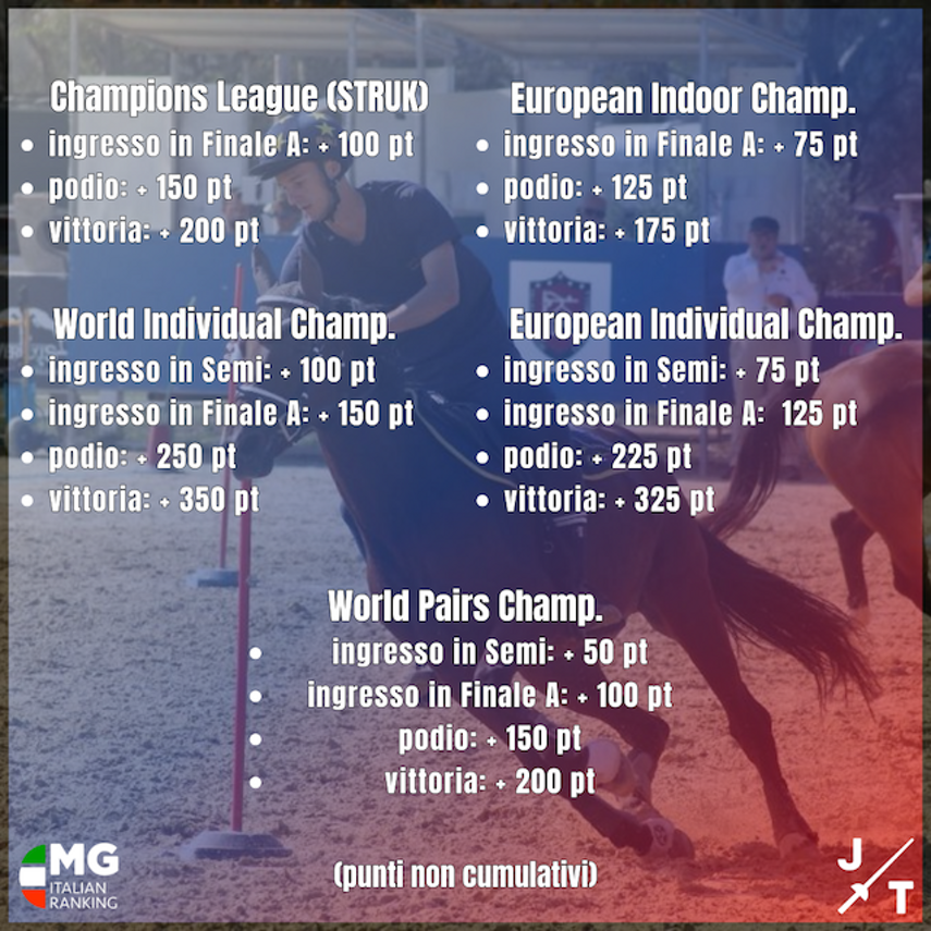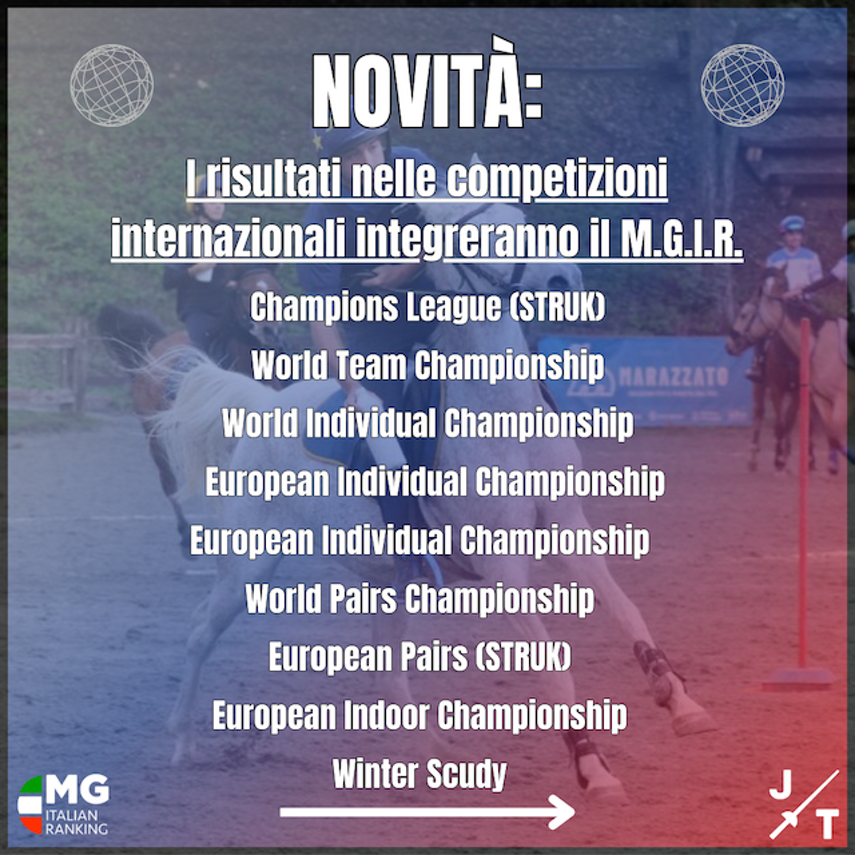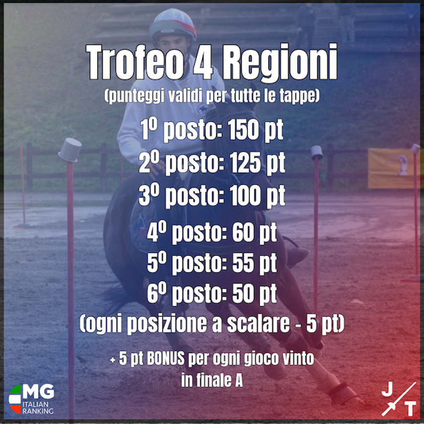 The competitions considered competitions in the MGIR are the 4 stages of "Trofeo 4 regioni", Italian Team Championship, Italian Pairs and Individuals! During the season the results of the various competitions add together and give rise to the battle to gain the firsts positions of the ranking.